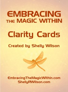 Shelly Wilson has created this deck of inspirational and empowering Clarity Cards to remind us to embrace the magic within. Much like the Cards of Empowerment deck, I was inspired to create this deck as a divination tool to accompany the book, Embracing the Magic Within, and to empower you to connect to the you within. I purposefully have chosen not to include detailed instructions with this deck of cards as I encourage you to explore and use them as you are guided to do so.